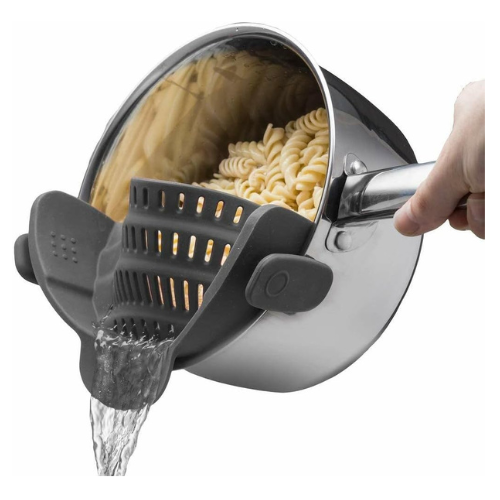 Kitchen Gizmo Snap N’ Strain – Silicone Clip-On Colander, Heat Resistant Drainer for Vegetables and Pasta Noodles, Kitchen Gadgets for Bowl, Pots, and Pans – Essential Home Cooking Tools – Grey